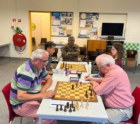 Op maandag 3 juli 2023 was de afsluitende schaakavond van de senioren. Op deze avond waren de kampioenschappen van groep B en groep A gepland. In de B groep speelde de winterkampioen Peter den Heijer tegen de zomerkampioen Ioan Pop. Deze partij eindigde in remise, maar omdat Peter geen beslissende snelschaakpartijen wilde spelen, is Ioan de kampioen van de B groep geworden.
