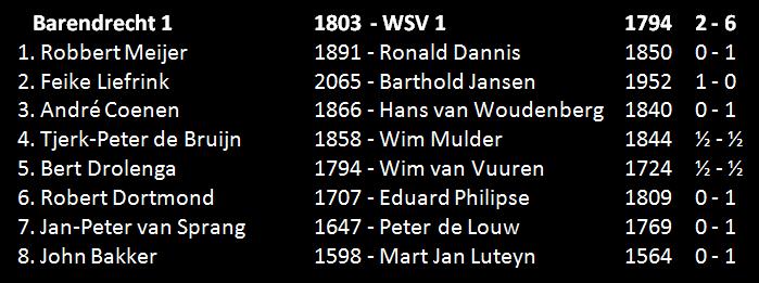 André was als laatste klaar. Ook hij moest opboksen tegen een wit offensief. Een loper sprong van de grote schans de zwarte stelling binnen, waarna het einde langzaam maar zeker onvermijdelijk kwam. (2-6).