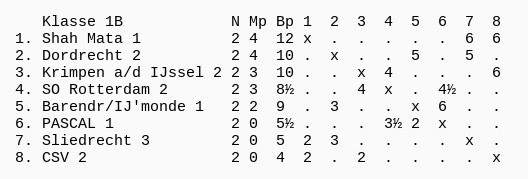 Ook in de tweede ronde tegen Dordrecht 2 was dit weer eens het geval en flipperden de voordelen heen en weer over de borden.