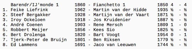 Ook Robbert ontkwam niet aan het remisevirus. Jammer, want hij zich psychologisch goed voorbereid door geheel in stijl zijn CaSio-horloge om te doen. De bijna naamgenoot aan de andere kant van het bord was helaas niet onder de indruk (1½-1½).