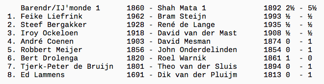 Iroy gaf deze vervolgens aan Maarten. De partij ging na een zoutloze opening gelijk op en het evenwicht is nooit echt verbroken geweest (1-4).