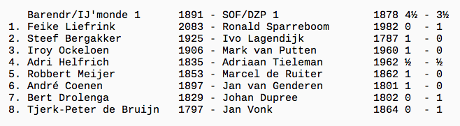 Met deze nipte zege blijven we in het spoor van Spijkenisse 2, dat met 6-2 won en nu dus 1½ bordpunt voor staat.
