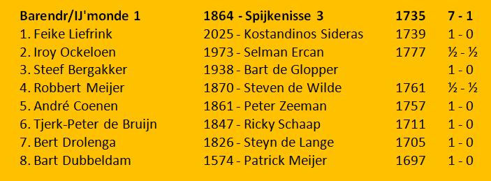 Spijkenisse 3 stond na 5 ronden een half bordpuntje onder ons.