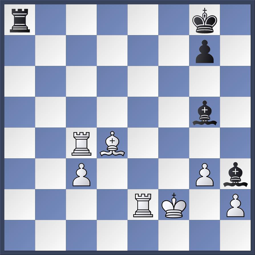 De opzienbarendste partij was die van Jean-Peter. Met zwart had hij zich in onderstaande nesten gewerkt. We hadden deze partij in onze gedachten toen al lang opgegeven en onze hoop op andere partijen gevestigd. Maar er voltrekt zich een Papendrechts drama. Wit speelt Tc7?? en kan na Tf8+ opgeven. Wit gaat mat. Ik zou hier heel slecht van slapen.