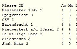Extern, RSB team 1, RSB team 2Het tweede team verloor afgelopen vrijdag met 5,5-2,5 van Spijkenisse 4. Spijkenisse had natuurlijk nog iets recht te zetten na de nederlaag van hun derde team eerder dit seizoen tegen Barendrecht 1.