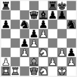 Ab, met wit aan bord 8, scoorde zijn eerste resultaat: de beer is los, het eerste schaap is over de dam, kortom. “Na een normale opening stellen beide partijen het slaan van pionnen nog even uit. “Na de rokkades worden de zwaardere stukken in stelling gebracht. Zwart stuurt aan op ruil van de dames, waarna er een stelling ontstaat waarbij wit met nagenoeg al zijn pionnen naar voren is gekomen. De stelling is na de 25e zet eigenlijk al remise-rijp, maar beide partijen proberen nog wat uit. Op de 31e zet wordt op het remise-aanbod van wit ingegaan.”