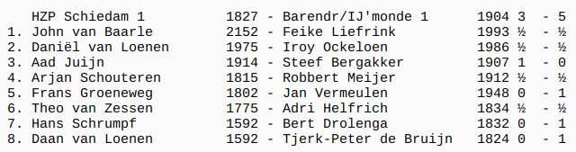 Hierna sneefde Steef, zoals verwacht. Na de opening stond hij nog redelijk, maar zijn slechte vorm resulteerde in kwaliteitsverlies. Hierna probeerde hij het nog lang en gelaten, maar zijn tegenstander maakte het bedachtzaam en beheerst af (3½-2½).