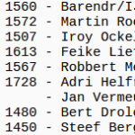 Nou, niet zo best. Bij Feike ging het nog wel, maar Steef en Robbert hadden het moeilijk en Bert had het helemaal zwaar te verduren. Met 4-4 mochten we onze handen dichtknijpen.