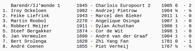 In de derde ronde stond Charlois Europoort 2 op het menu. Een zware klus, want net als wij hadden ze de eerste twee ronden dik gewonnen. Dus de winnaar kon alvast een voordschot nemen op het kampioenschap.