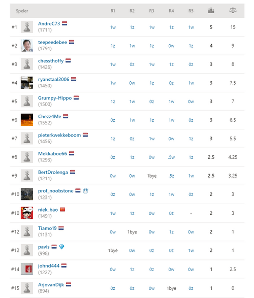 Na afloop heb ik veel positieve reacties gehad. Bedankt daarvoor, meer toernooien zoals dit zullen zeker in de toekomst worden gehouden. De eindstand staat hieronder.