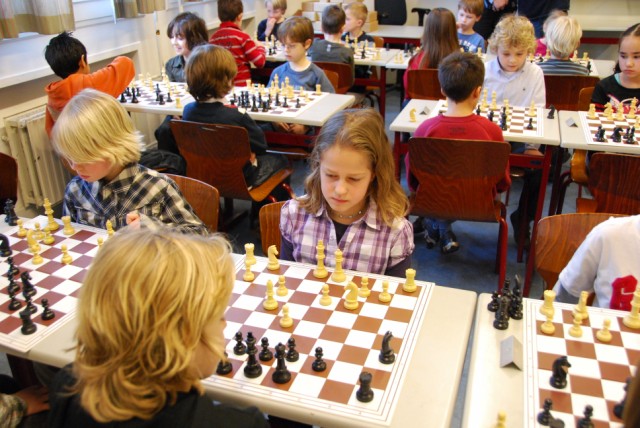 Vandaag speelde de f-jeugd (spelers t/m 8 jaar) om het kampioenschap van de RSB (persoonlijke jeugdkampioenschappen). Namens onze vereniging gaven Stijn, Stefan en Annika acte de presence in het Libanon Lyceum in Rotterdam-Kralingen. Stijn begon met een nederlaag, speelde daarna heel degelijk en behaalde een uitstekende score van 5 uit 7. Hij werd daarmee derde en kon een mooie beker in ontvangst nemen. Stefan wisselde goede met minder goede momenten af, maar kwam toch tot een hele goede score van 4 uit 7. Annika begon uitstekend met 3 uit 5 tegen sterke tegenstanders, maar verloor in de slotronde de partij die beslissend was voor de eerste plaats bij de meisjes en deelname aan het NK. Met 3 uit 7 deed ook zij het prima.