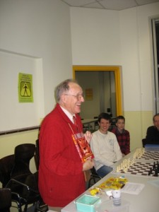 Afgelopen maandag vond de jaarvergadering plaats. Belangrijkste besluit was de benoeming van John tot bestuurslid speciaal belast met jeugdzaken. Verder kreeg Leo een schaakkaartspel waarmee het nuttige met het aangename kan worden gecombineerd en werd Jan benoemd tot erelid van de vereniging vanwege zijn grote verdiensten als jeugdleider in de afgelopen decennia. Jan kreeg hiervoor van de voorzitter het boek over zijn lijfopening uitgereikt: “De zwarte Leeuw”.