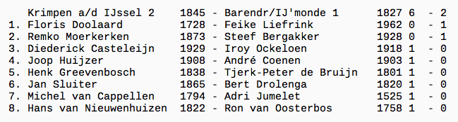 André was de volgende tegenvaller. In een gelijkopgaande partij raakte hij op het eind het spoor bijster. Hoe, dat heb ik niet meer gezien (1-5).
