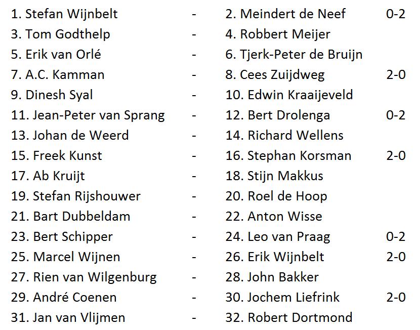 Onder deskundige leiding van Roel de Hoop heeft op maandag 17 december de loting plaatsgevonden voor de interne beker. De eerste uitslagen zijn al binnen.