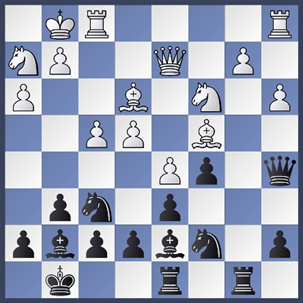 24.Db7 Dc1+ 25.Pf1 Lb5! De genadeklap. wit gaf het op.