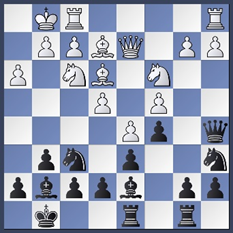 13..b5! (-1.18) De enige manier om het nadeel te beperken was 14.e5 b4 15.exf6 bxc3 16.bxc3 Lxf6. Wit aarzelde en dat bleek fataal.