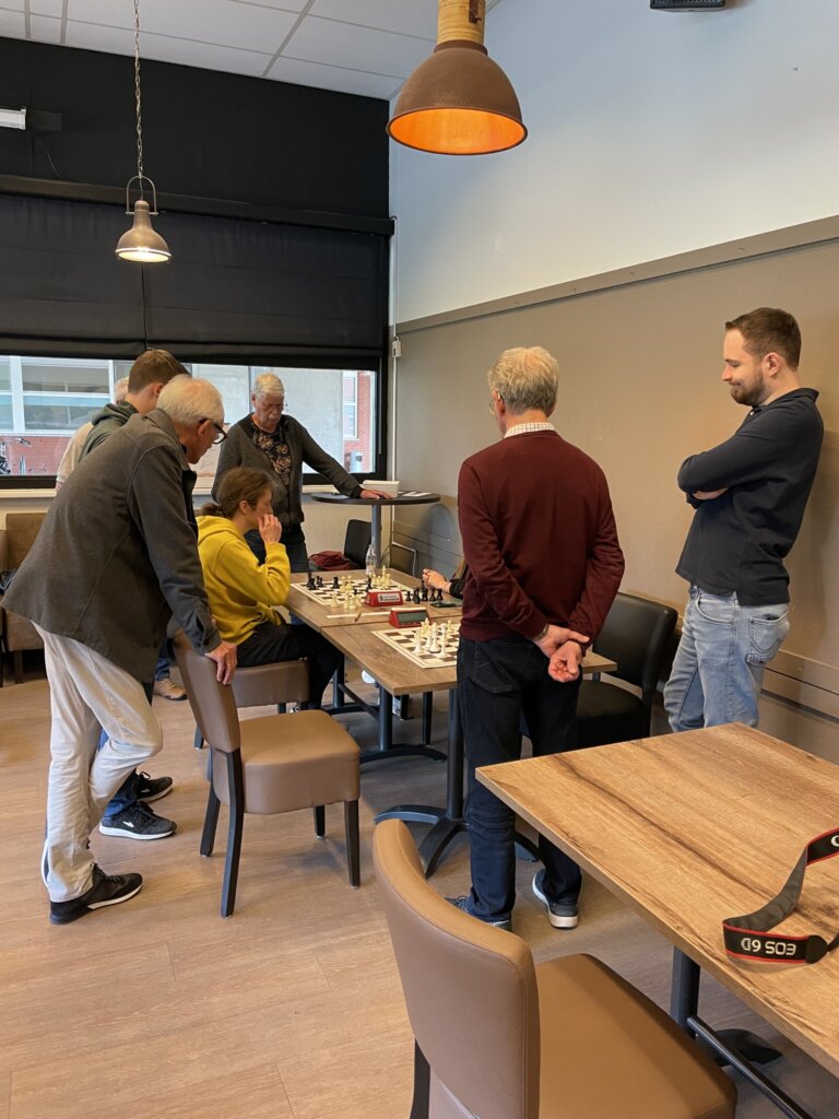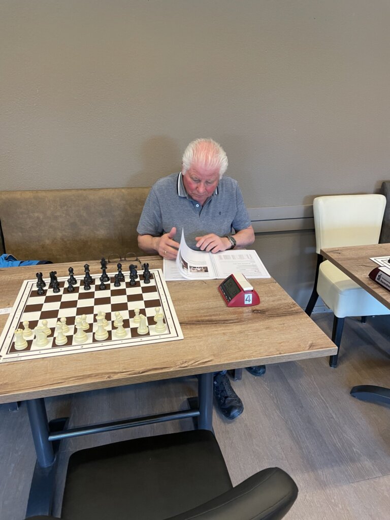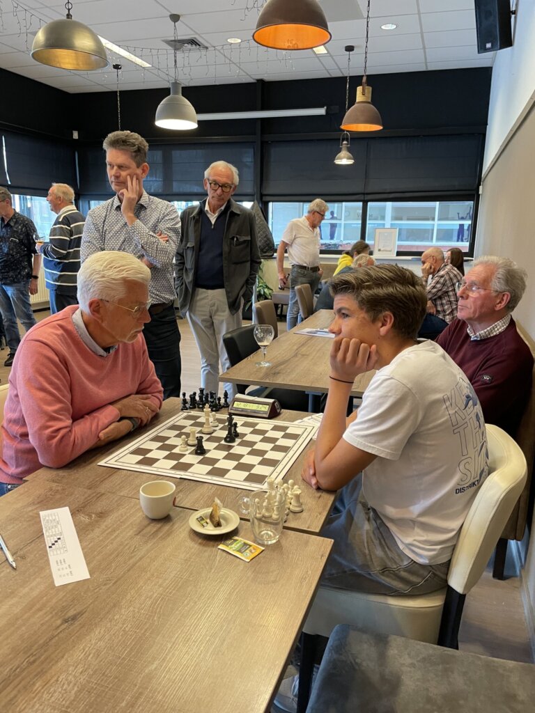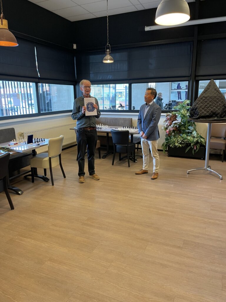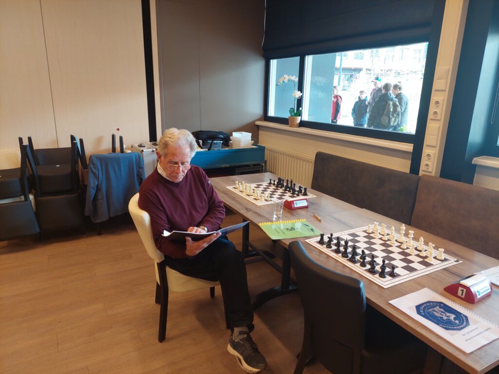 Oud-voorzitter Jan Spek was aandachtige toeschouwer. Hij durfde niet mee te doen omdat hij al 30 jaar niet meer schaakt. Maar: “Het begint wel te kriebelen !“.