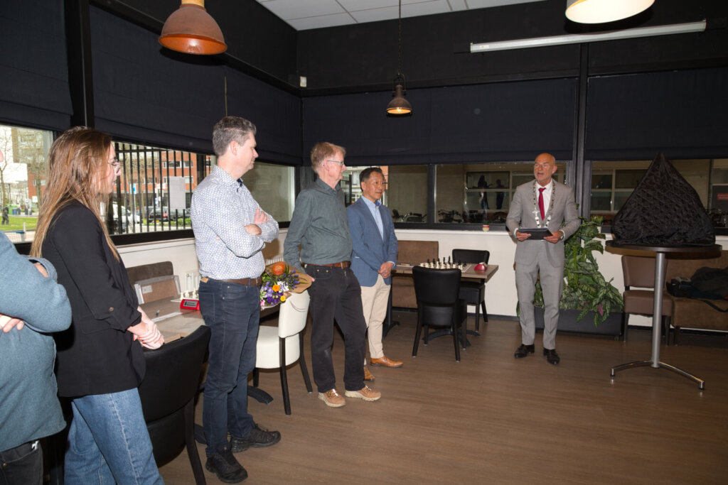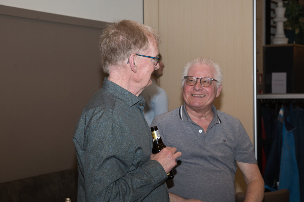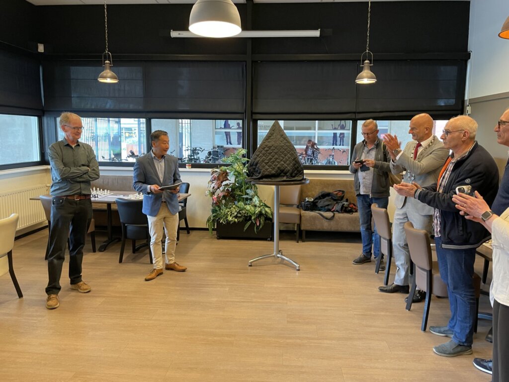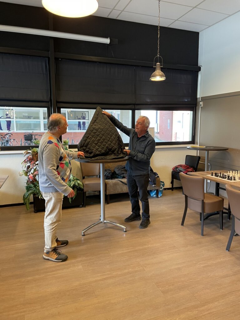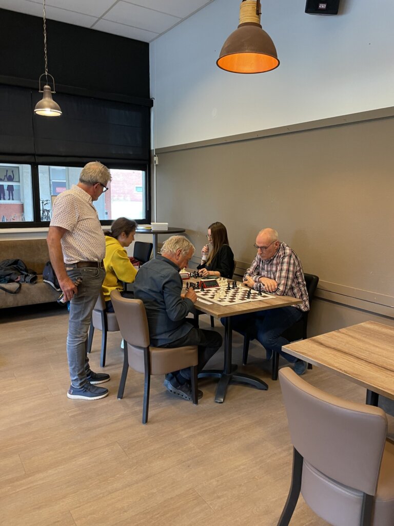 Oud-voorzitter Jan Spek was aandachtige toeschouwer. Hij durfde niet mee te doen omdat hij al 30 jaar niet meer schaakt. Maar: “Het begint wel te kriebelen !“.