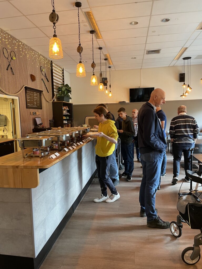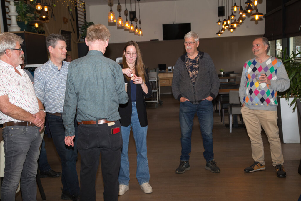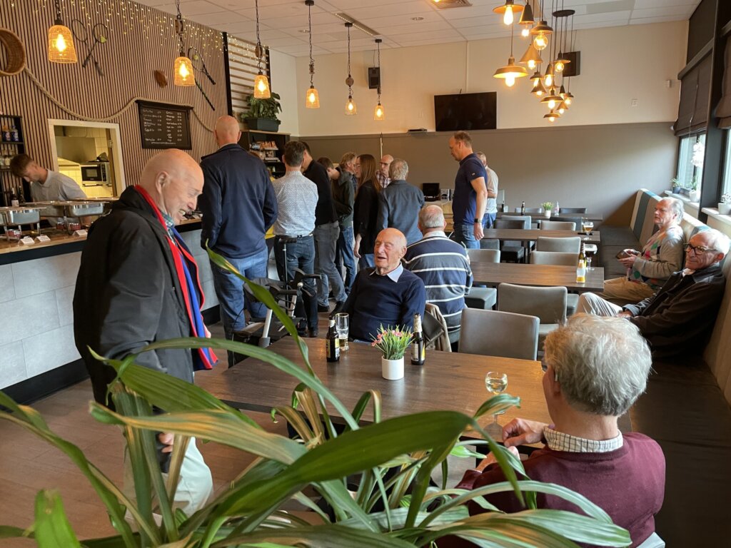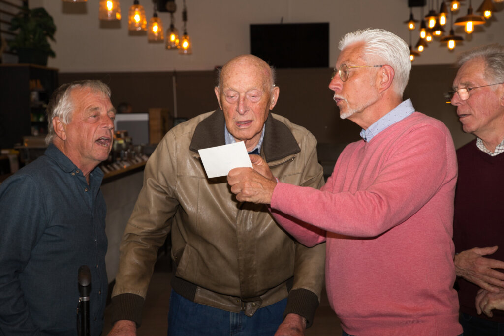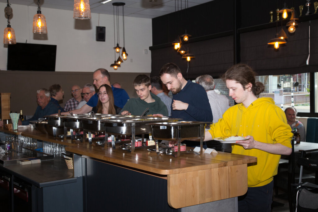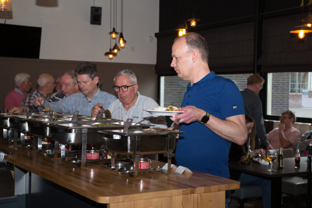 Nadat erelid A.C. Kamman triomfantelijk was binnengekomen (“Ik ben 97 jaar oud en – vinger omhoog – en een half !“) konden we aanvallen op het smakelijke buffet.