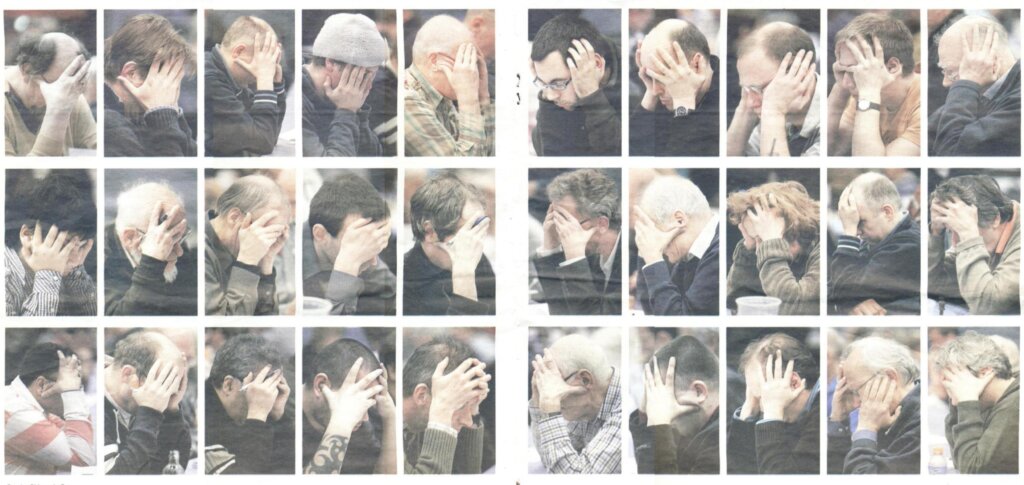 Uit NRC-next van donderdag 20 januari 2011: een middenpagina vol met denkhoofden in Wijk aan Zee. Nee, niet de grootmeesters, maar een selectie ploeterende amateurs van een van ’s werelds grootste schaaktoernooien. Eén van die denkhoofden is van Barendrechtse oorsprong. Klik op de afbeelding om ‘m te vergroten.