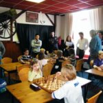 Maar hoe was de eerst ronde afgelopen voor ons? Het bleek desastreus te zijn, drie remises van Feike, Tjerk Peter en Robbert en niet één overwinning (1½ uit 8). De schuldige, mijn persoon, want John die even bij mij was wezen kijken zag, zoals vaker, dat ik weer eens gewonnen stond en niet zo’n klein beetje ook . Hij had tegen iedereen gezegd in volle overtuiging “Roel gaat winnen.” Toen ik hem tegenkwam wilde hij mij feliciteren, ik moest hem zwaar teleurstellen dat ik verloren had van een 15-jarig jochie uit Tuitjehorn (ligt bij Alkmaar). En ik had nog nooit zo gewonnen gestaan! Wat kan het schaakleven toch hard zijn!! Verder werd de eerst avond gezellig doorgebracht in De Zon waarbij een aantal partijen nog wel geanalyseerd werden.